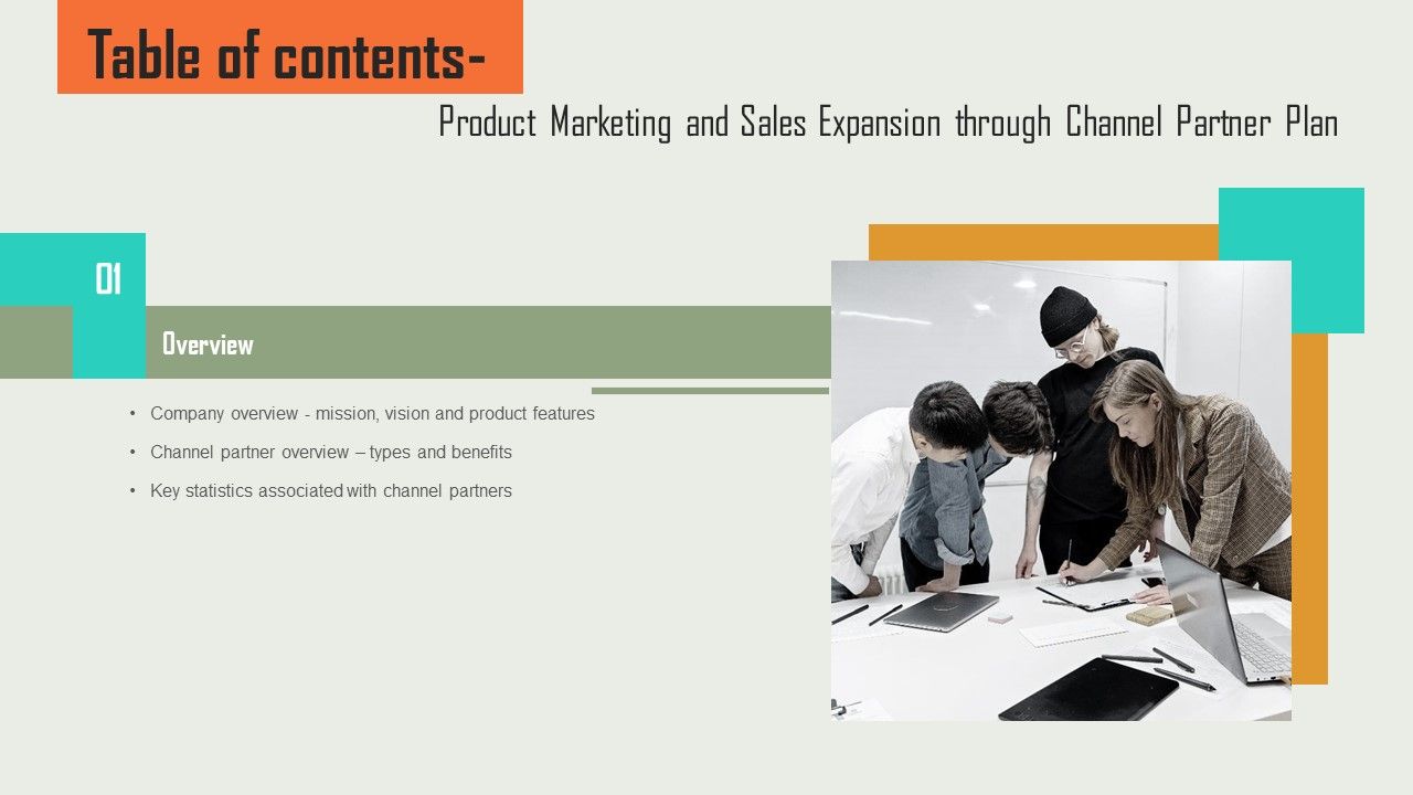 Presenting this PowerPoint presentation, titled Product Marketing And Sales Expansion Through Channel Partner Plan Table Of Contents Designs PDF, with topics curated by our researchers after extensive research. This editable presentation is available for immediate download and provides attractive features when used. Download now and captivate your audience. Presenting this Product Marketing And Sales Expansion Through Channel Partner Plan Table Of Contents Designs PDF. Our researchers have carefully researched and created these slides with all aspects taken into consideration. This is a completely customizable Product Marketing And Sales Expansion Through Channel Partner Plan Table Of Contents Designs PDF that is available for immediate downloading. Download now and make an impact on your audience. Highlight the attractive features available with our PPTs.
