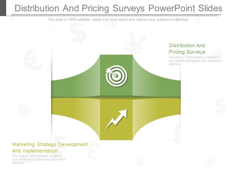This is a distribution and pricing surveys powerpoint slides. This is a two stage process. The stages in this process are distribution and pricing surveys, marketing strategy development and implementation.