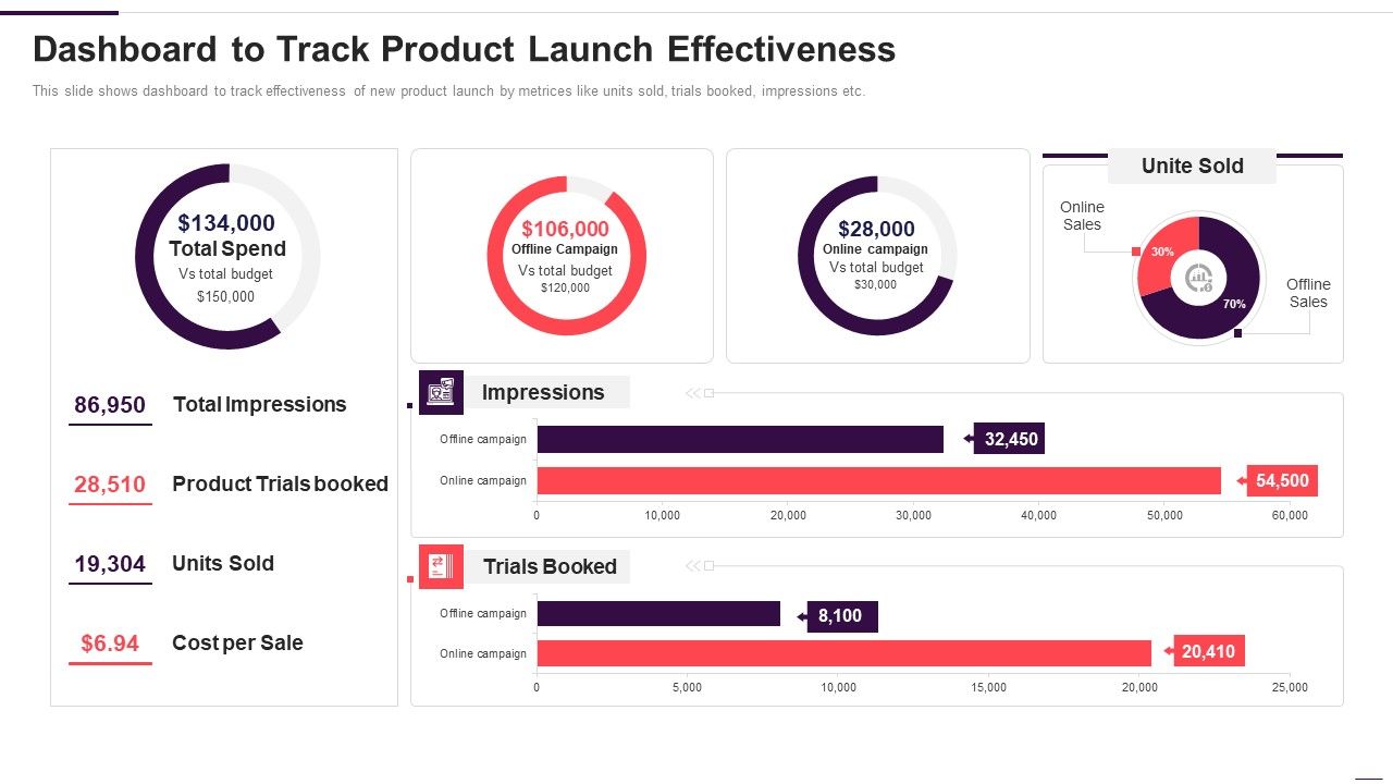 This slide shows dashboard to track effectiveness of new product launch by metrices like units sold, trials booked, impressions etc. Deliver an awe inspiring pitch with this creative implementation plan for new product launch dashboard to track product download pdf bundle. Topics like dashboard to track product launch effectiveness can be discussed with this completely editable template. It is available for immediate download depending on the needs and requirements of the user.