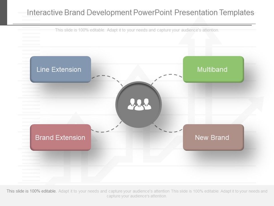 This is a interactive brand development powerpoint presentation templates. This is a one stage process. The stages in this process are multiband, new brand, brand extension, line extension.