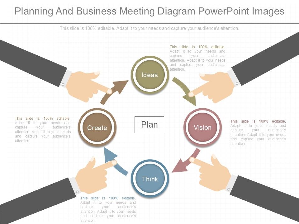 This is a planning and business meeting diagram powerpoint images. This is a four stage process. The stages in this process are ideas, create, think, vision, plan.