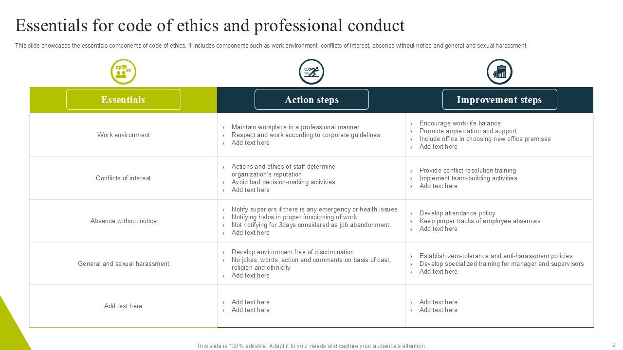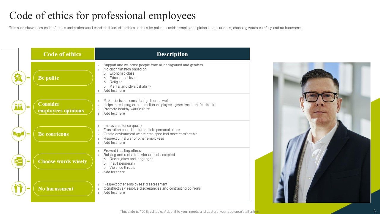 Professional Code Of Ethics Ppt PowerPoint Presentation Complete Deck With Slides with all 12 slides: