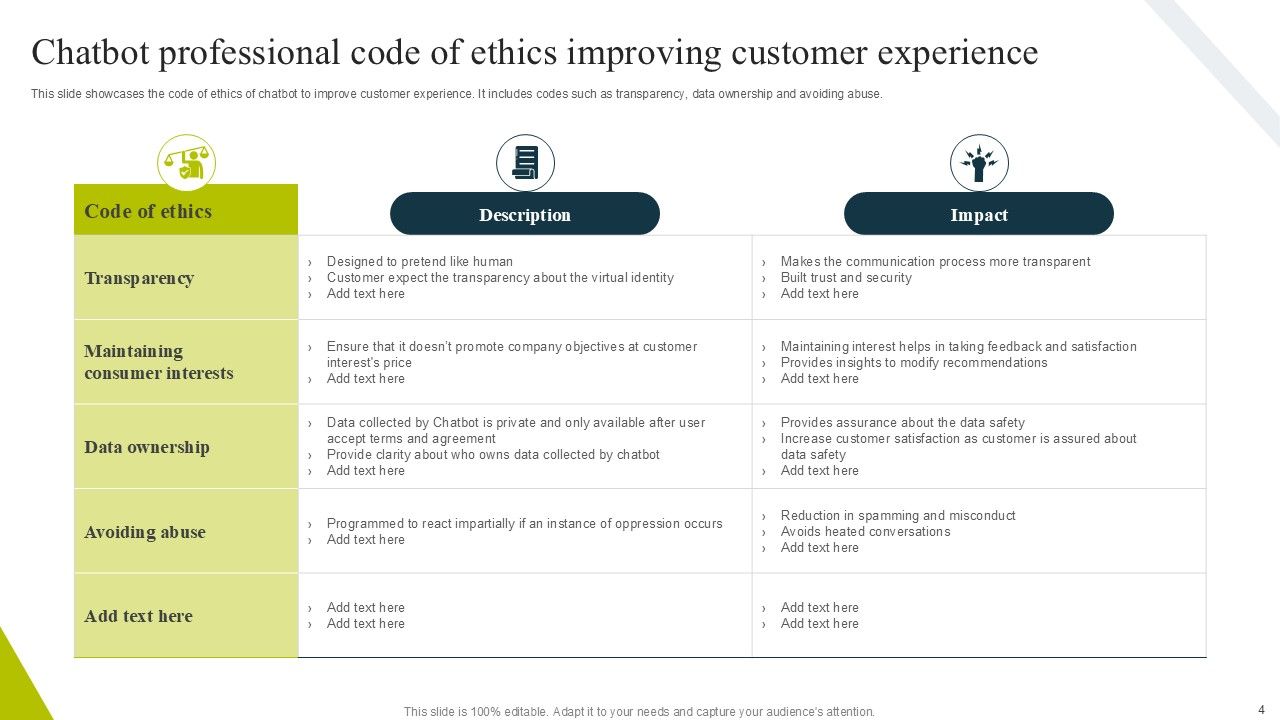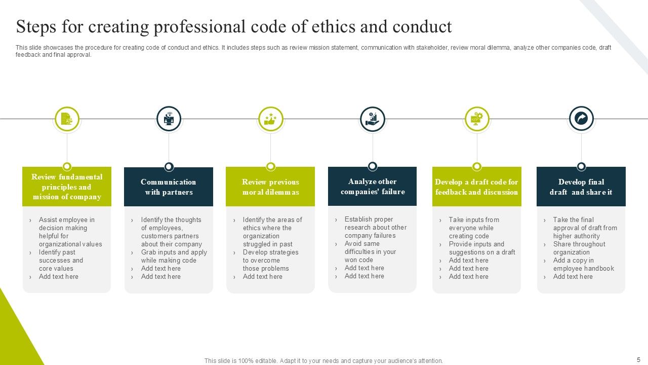 This Professional Code Of Ethics Ppt PowerPoint Presentation Complete Deck With Slides acts as backup support for your ideas, vision, thoughts, etc. Use it to present a thorough understanding of the topic. This PPT slideshow can be utilized for both in-house and outside presentations depending upon your needs and business demands. Entailing twelve slides with a consistent design and theme, this template will make a solid use case. As it is intuitively designed, it suits every business vertical and industry. All you have to do is make a few tweaks in the content or any other component to design unique presentations. The biggest advantage of this complete deck is that it can be personalized multiple times once downloaded. The color, design, shapes, and other elements are free to modify to add personal touches. You can also insert your logo design in this PPT layout. Therefore a well-thought and crafted presentation can be delivered with ease and precision by downloading this Professional Code Of Ethics Ppt PowerPoint Presentation Complete Deck With Slides PPT slideshow.