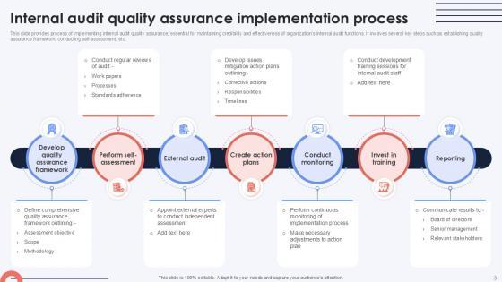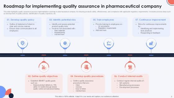 Take advantage of this well-researched and professionally-designed Quality Assurance Powerpoint Ppt Template Bundles to ace your next business meeting. Use this PPT complete deck to impress the management with your ideas for business growth and revenue increase. Use the Healthcare Quality Assurance, Implementation Process, Software Quality Assurance, Internal Audit Quality, QA Testing-slide Template Bundle to leave no stone unturned as you present each step of your process. Employ the visual tools within the slides such as graphs, charts, and tables to ensure that the audience can never look away from the presentation. With attractive visuals, easy to understand structure, and your knowledge, your presentation will have the attention it deserves. Download this PPT Template from the link below.