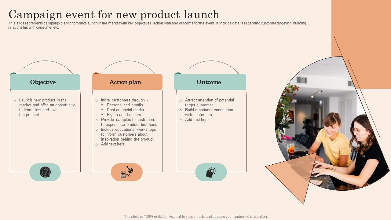 This slide represents campaign plan for product launch in the market with key objectives, action plan and outcome for the event. It include details regarding customer targeting, building relationship with consumer etc. Want to ace your presentation in front of a live audience Our Retail Promotion Strategies To Elevate Shopper Campaign Event For New Product Launch Ideas PDF can help you do that by engaging all the users towards you. Slidegeeks experts have put their efforts and expertise into creating these impeccable powerpoint presentations so that you can communicate your ideas clearly. Moreover, all the templates are customizable, and easy to edit and downloadable. Use these for both personal and commercial use.