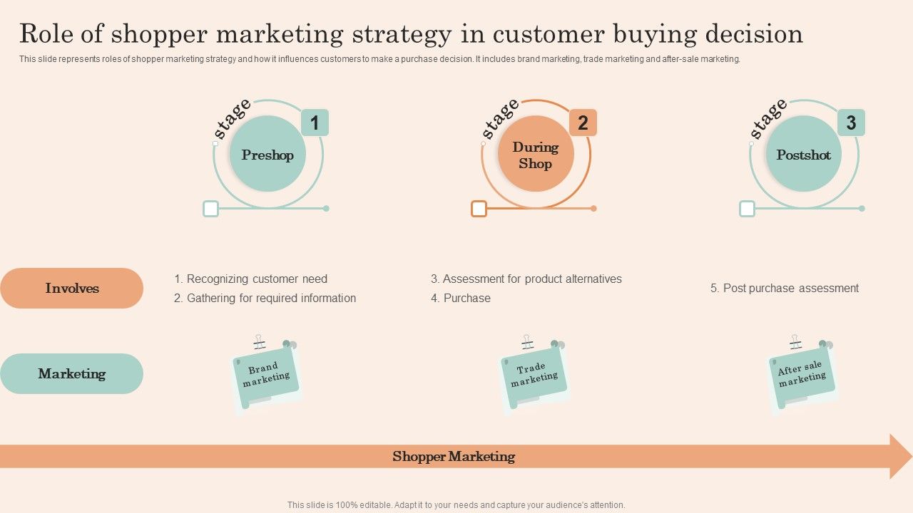 This slide represents roles of shopper marketing strategy and how it influences customers to make a purchase decision. It includes brand marketing, trade marketing and after-sale marketing. The Retail Promotion Strategies To Elevate Shopper Role Of Shopper Marketing Strategy In Customer Inspiration PDF is a compilation of the most recent design trends as a series of slides. It is suitable for any subject or industry presentation, containing attractive visuals and photo spots for businesses to clearly express their messages. This template contains a variety of slides for the user to input data, such as structures to contrast two elements, bullet points, and slides for written information. Slidegeeks is prepared to create an impression.