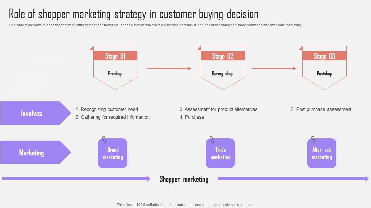 Role Of Shopper Marketing Strategy In Customer Buying Optimizing Customer Purchase Experience By Executing Slides PDF