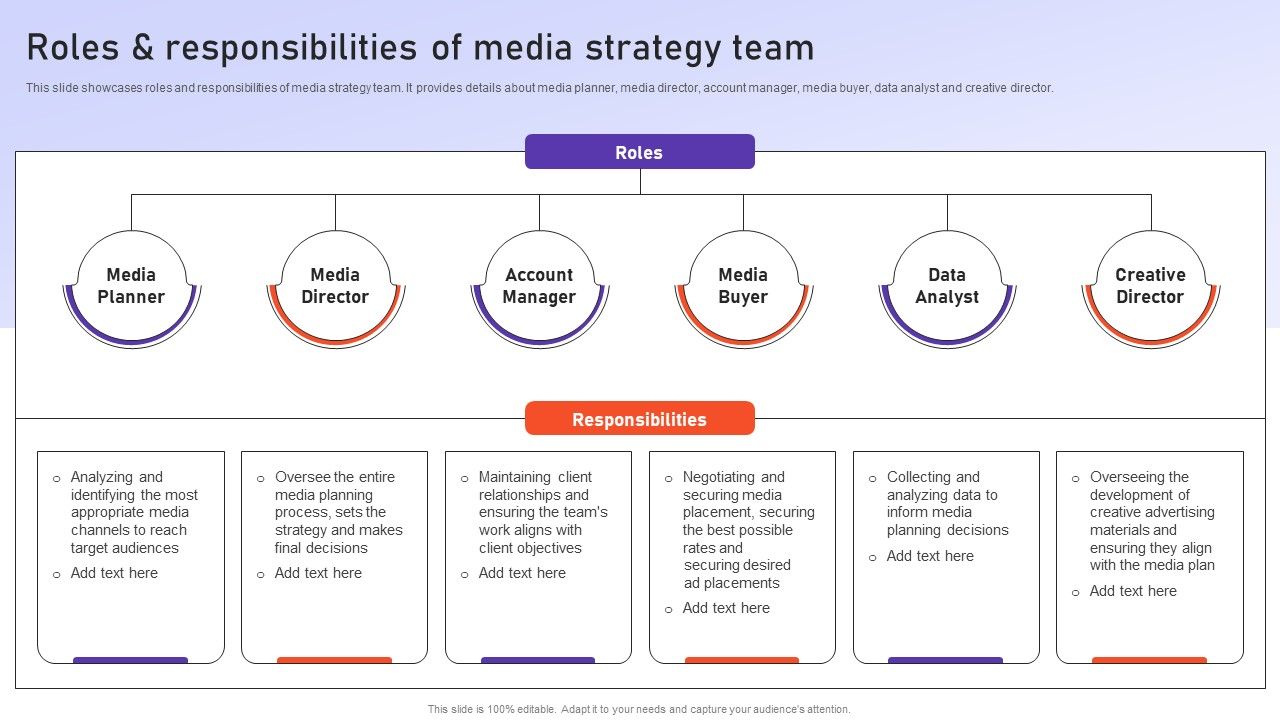 Roles And Responsibilities Of Media Strategy Team Ppt PowerPoint Presentation File Deck PDF with all 9 slides: