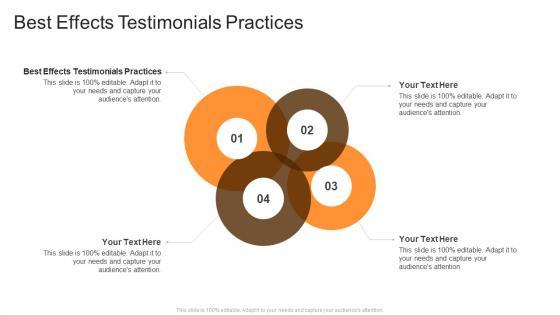 Presenting our innovatively-designed set of slides titled Best Effects Testimonials Practices In Powerpoint And Google Slides Cpb. This completely editable PowerPoint graphic exhibits Best Effects Testimonials Practices that will help you convey the message impactfully. It can be accessed with Google Slides and is available in both standard screen and widescreen aspect ratios. Apart from this, you can download this well-structured PowerPoint template design in different formats like PDF, JPG, and PNG. So, click the download button now to gain full access to this PPT design.