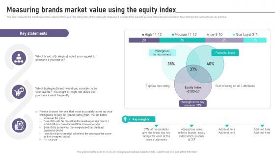 This slide measures the brand equity index based on the size of the intersection of the composite measures. It includes three aspects such as willingness to recommend, favorite brand and willingness to pay premium. Find a pre-designed and impeccable Brand Equity Management To Raise Measuring Brands Market Value Using The Equity Index. The templates can ace your presentation without additional effort. You can download these easy-to-edit presentation templates to make your presentation stand out from others. So, what are you waiting for Download the template from Slidegeeks today and give a unique touch to your presentation.