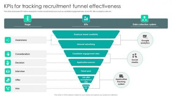 This slide showcases KPI metrics analyzed to monitor recruitment process such as candidate engagement rates, time to fill, offer acceptance rates etc. Slidegeeks has constructed Transforming Recruitment Process Kpis For Tracking Recruitment Funnel Effectiveness CRP DK SS after conducting extensive research and examination. These presentation templates are constantly being generated and modified based on user preferences and critiques from editors. Here, you will find the most attractive templates for a range of purposes while taking into account ratings and remarks from users regarding the content. This is an excellent jumping-off point to explore our content and will give new users an insight into our top-notch PowerPoint Templates.
