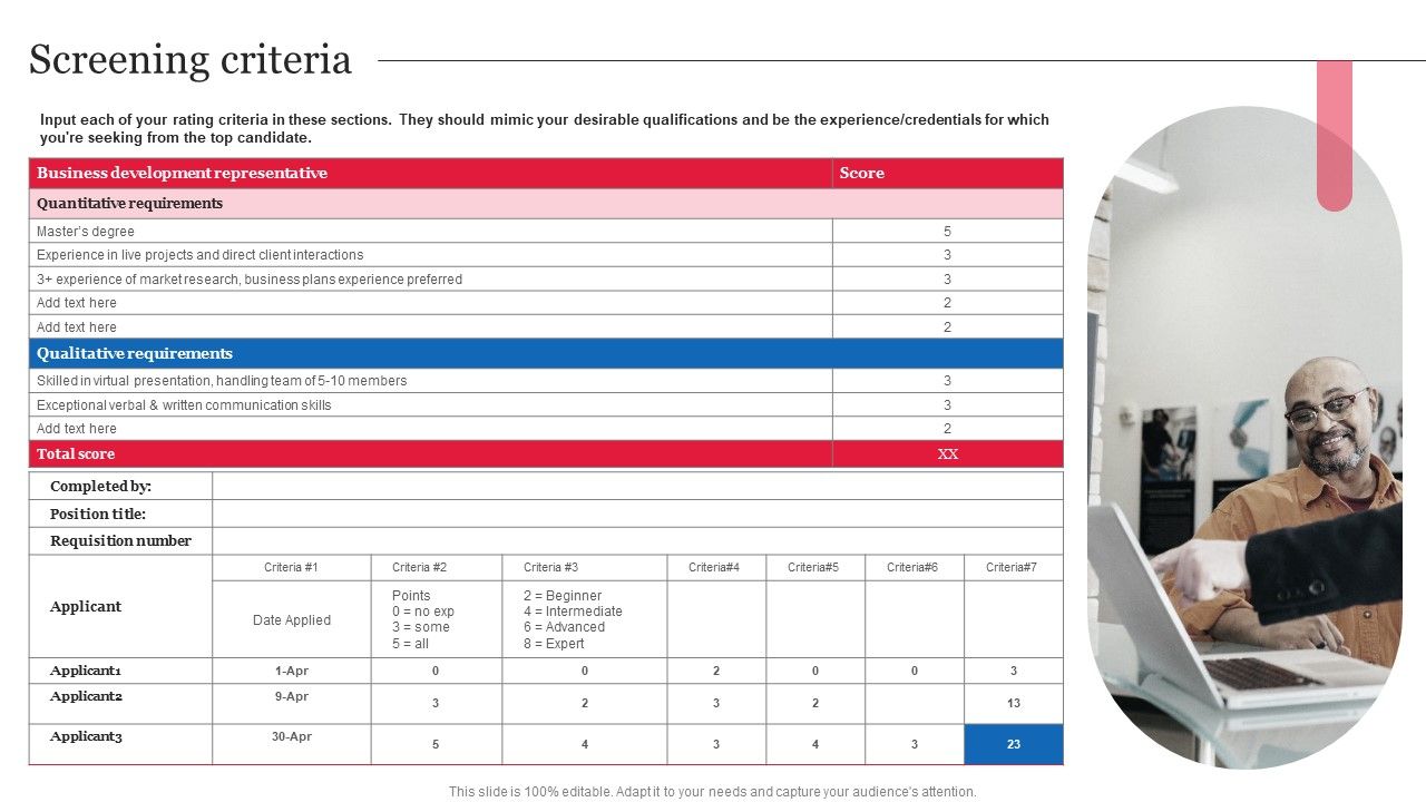 Boost your pitch with our creative Screening Criteria Strategic Guide On Talent Recruitment Sample PDF. Deliver an awe-inspiring pitch that will mesmerize everyone. Using these presentation templates you will surely catch everyones attention. You can browse the ppts collection on our website. We have researchers who are experts at creating the right content for the templates. So you do not have to invest time in any additional work. Just grab the template now and use them.