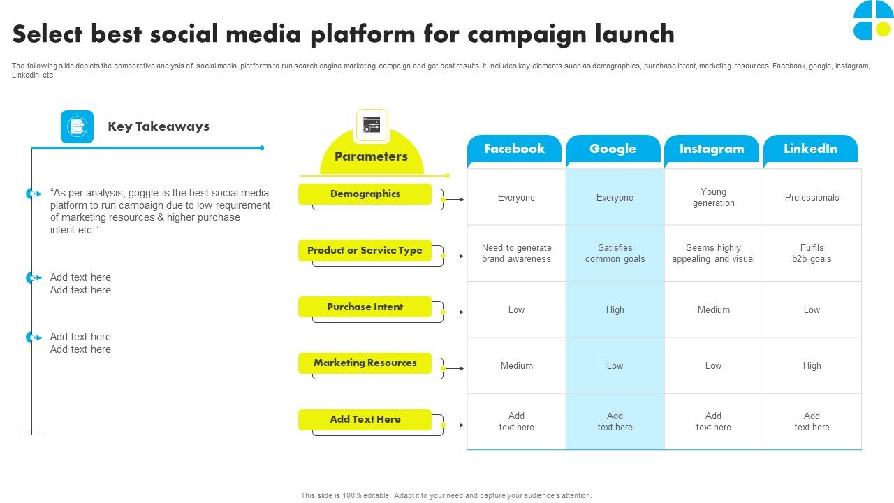 Select Best Social Media Platform For Campaign Launch Ppt Infographics Format Ideas PDF with all 9 slides: