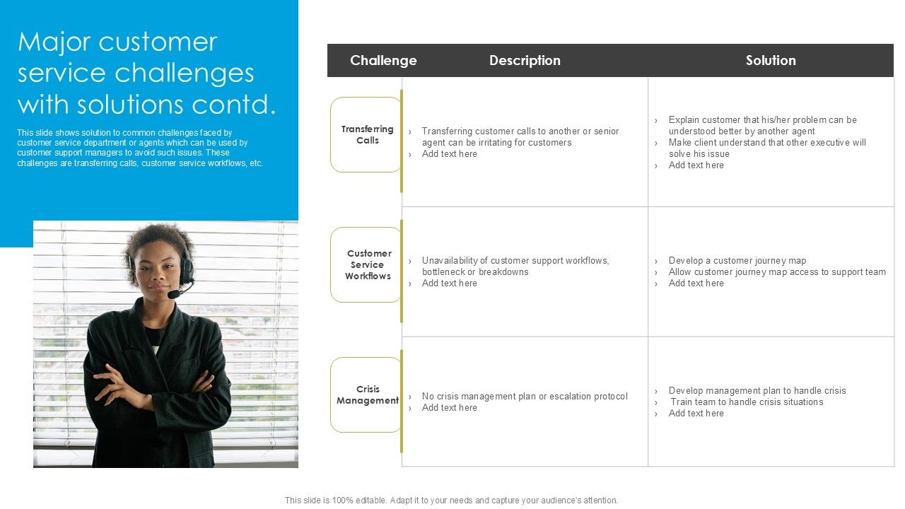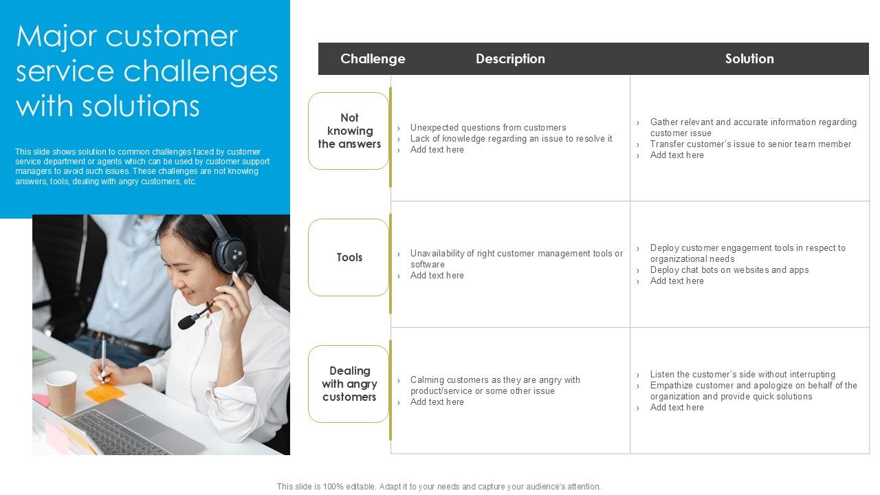 Service Strategy Guide To Maximize Customer Experience Major Customer Service Challenges With Solutions Portrait PDF