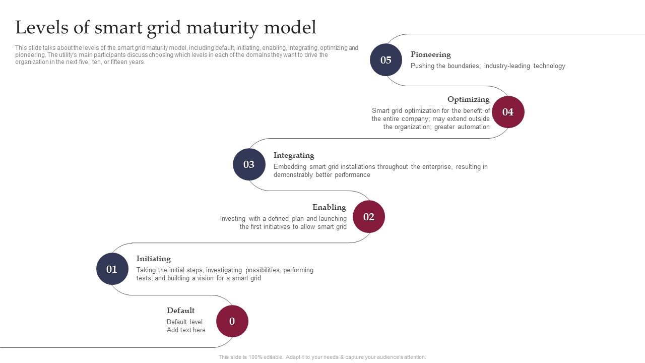 This slide depicts the internet of things based electricity energy meter reading over the internet. The components include a transformer, rectifier, regulator, display, series multi-contact, load, light-dependent resistor interface, and so on. This Smart Grid Technology Levels Of Smart Grid Maturity Model Topics PDF is perfect for any presentation, be it in front of clients or colleagues. It is a versatile and stylish solution for organizing your meetings. The Smart Grid Technology Levels Of Smart Grid Maturity Model Topics PDF features a modern design for your presentation meetings. The adjustable and customizable slides provide unlimited possibilities for acing up your presentation. Slidegeeks has done all the homework before launching the product for you. So, do not wait, grab the presentation templates today