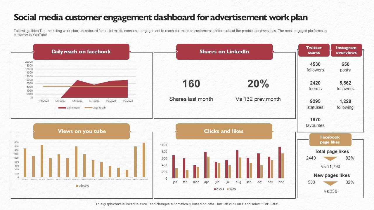 Social Media Customer Engagement Dashboard For Advertisement Work Plan Clipart PDF with all 2 slides: