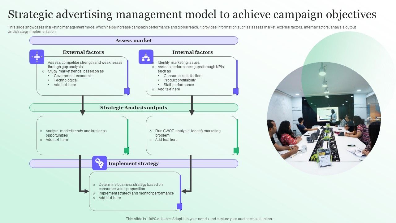 Strategic Advertising Management Model To Achieve Campaign Objectives Pictures PDF with all 9 slides: