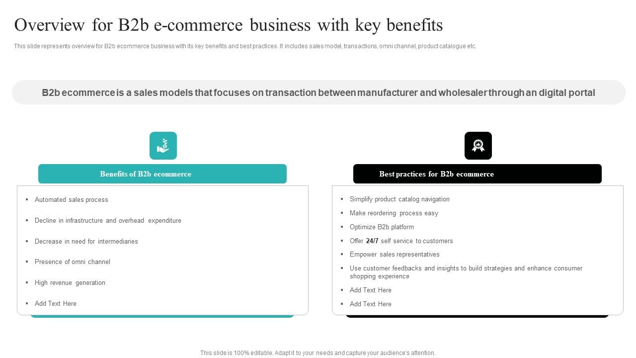 Strategic Ecommerce Plan For B2B Enterprises Overview For B2b E Commerce Business With Key Benefits Themes PDF with all 9 slides: