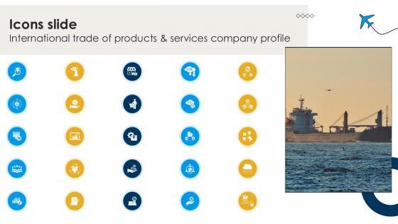 Help your business to create an attention-grabbing presentation using our Icons Slide International Trade Of Products And Services Company Profile PPT PowerPoint CP SS V set of slides. The slide contains innovative icons that can be flexibly edited. Choose this Icons Slide International Trade Of Products And Services Company Profile PPT PowerPoint CP SS V template to create a satisfactory experience for your customers. Go ahead and click the download button.