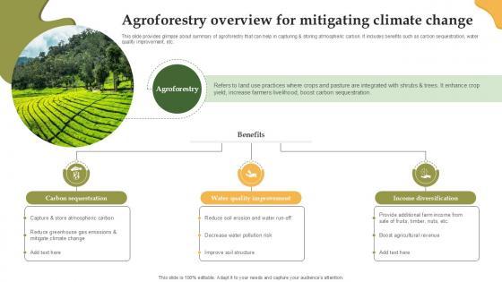 This slide provides glimpse about summary of agroforestry that can help in capturing and storing atmospheric carbon. It includes benefits such as carbon sequestration, water quality improvement, etc. Whether you have daily or monthly meetings, a brilliant presentation is necessary. Agroforestry Overview For Mitigating Enhancing Productivity With Adoption PPT Sample can be your best option for delivering a presentation. Represent everything in detail using Agroforestry Overview For Mitigating Enhancing Productivity With Adoption PPT Sample and make yourself stand out in meetings. The template is versatile and follows a structure that will cater to your requirements. All the templates prepared by Slidegeeks are easy to download and edit. Our research experts have taken care of the corporate themes as well. So, give it a try and see the results.