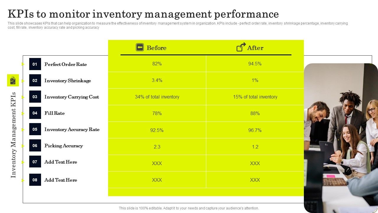 Strategies To Order And Manage Ideal Inventory Levels Kpis To Monitor Inventory Management Mockup PDF with all 9 slides: