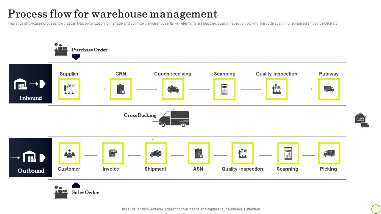 Strategies To Order And Manage Ideal Inventory Levels Process Flow For Warehouse Slides PDF with all 9 slides: