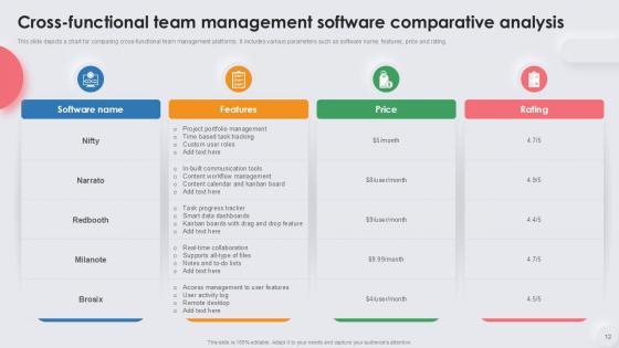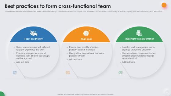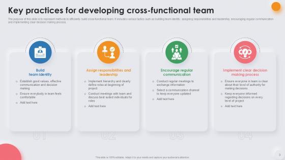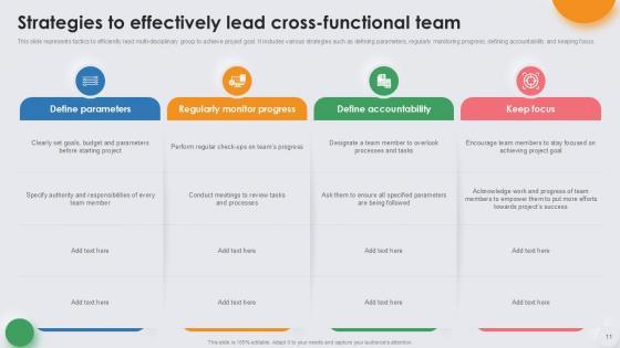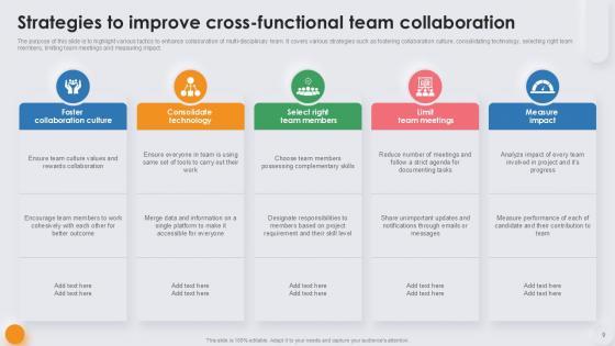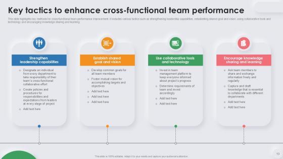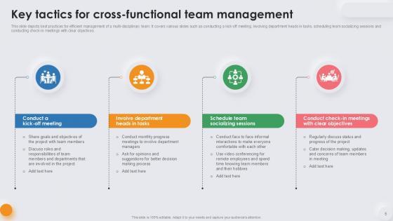 Deploy this comprehensive Cross Functional Team Powerpoint Ppt Template Bundles to analyze how to innovatively carry forward your business with this Cross Functional Team Leadership Tactics, Cross Functional Team Performance, Cross Functional Team Strategies-slide complete deck. There are also options galore if you want to key in your own data in this wonderful presentation, which as always is 100 percent editable and customizable. This template showcases visual elements of the business process to help you understand the many advantages of using presentation templates to spruce up your offerings and be on the top of the game. With the use of this presentation template, you prove yourself to be a champion of the new world of winning clients and the master of pitches that matter. Download now.