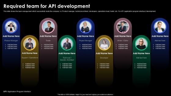Are you searching for a Required Team For Api Development Biography Attention Ppt Templates that is uncluttered, straightforward, and original Its easy to edit, and you can change the colors to suit your personal or business branding. For a presentation that expresses how much effort you have put in, this template is ideal With all of its features, including tables, diagrams, statistics, and lists, its perfect for a business plan presentation. Make your ideas more appealing with these professional slides. Download Required Team For Api Development Biography Attention Ppt Templates from Slidegeeks today.