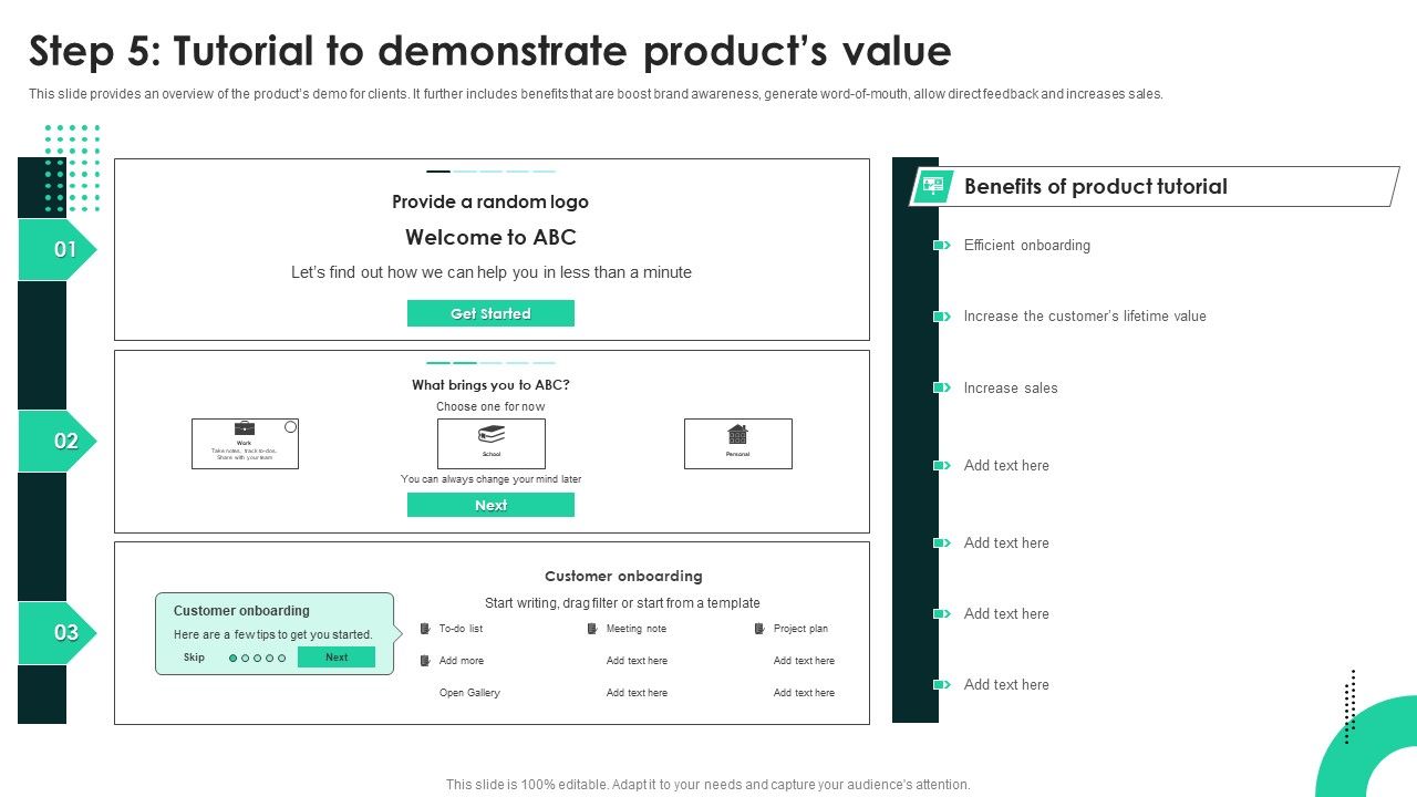 Techniques To Enhance User Onboarding Journey Step 5 Tutorial To Demonstrate Products Value Background PDF