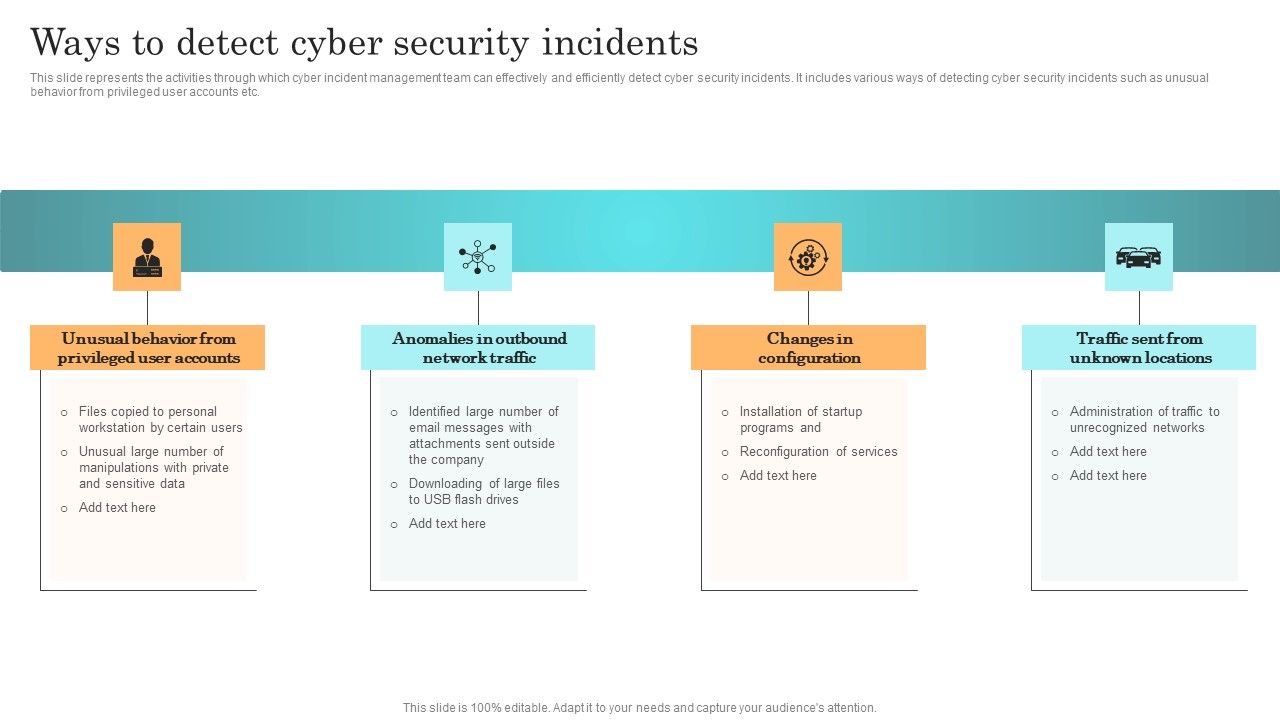 Incident Response Techniques Deployement Ways To Detect Cyber Security Incidents Infographics PDF