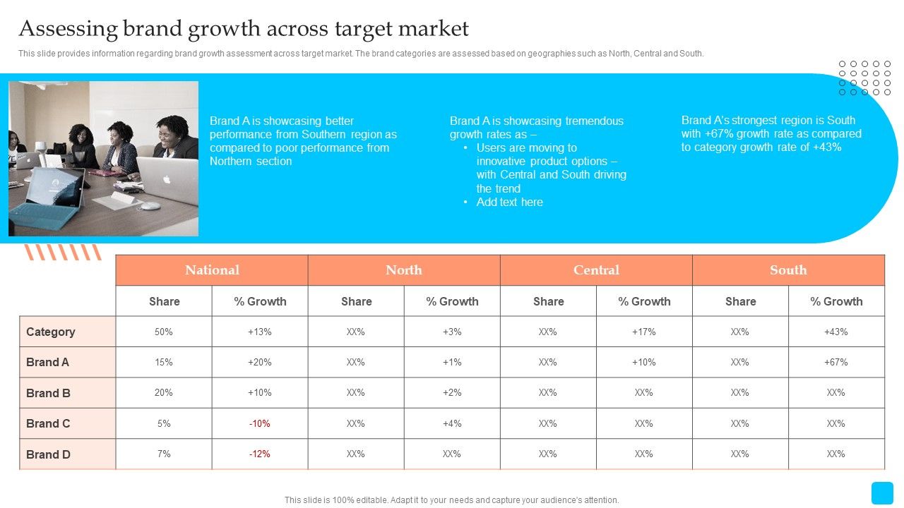 Strategic Toolkit To Administer Brand Image Assessing Brand Growth Across Target Market Slides PDF