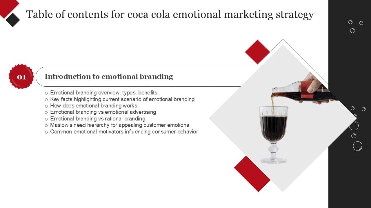 Whether you have daily or monthly meetings, a brilliant presentation is necessary. Table Of Contents For Coca Cola Emotional Marketing Strategy Mockup PDF can be your best option for delivering a presentation. Represent everything in detail using Table Of Contents For Coca Cola Emotional Marketing Strategy Mockup PDF and make yourself stand out in meetings. The template is versatile and follows a structure that will cater to your requirements. All the templates prepared by Slidegeeks are easy to download and edit. Our research experts have taken care of the corporate themes as well. So, give it a try and see the results.