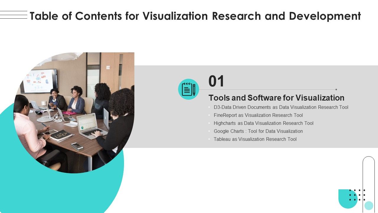 Table Of Contents For Visualization Research And Development Ppt Model Influencers PDF with all 1 slides: