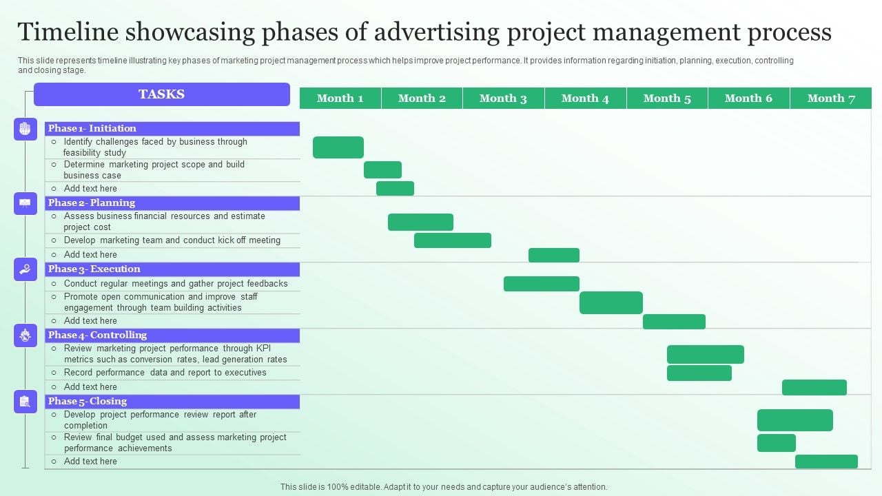 Timeline Showcasing Phases Of Advertising Project Management Process Inspiration PDF with all 9 slides: